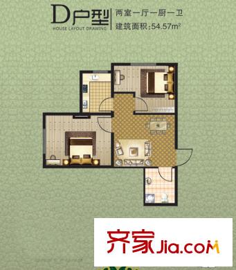 阳光绿城D户型 2室1厅1卫1厨