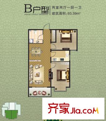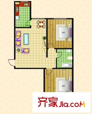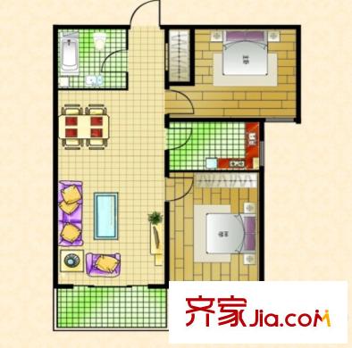 阳光绿城B户型 2室2厅1卫1厨