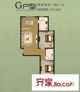 阳光绿城101.52㎡G户型两室两厅一卫户型2室2厅1卫