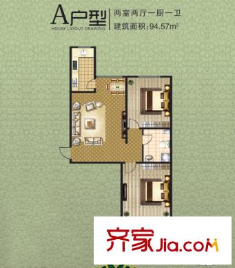 阳光绿城A户型 2室2厅1卫1厨