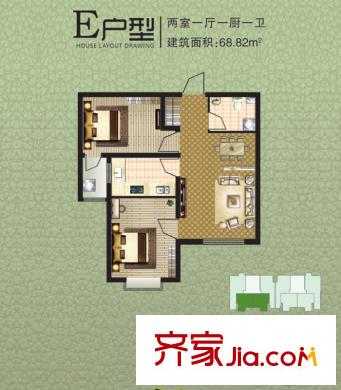 阳光绿城售完E户型 2室1厅1卫1厨