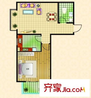 阳光绿城C户型 1室1厅1卫1厨