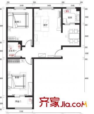 嘉惠园户型图两室 2室2厅1卫1厨