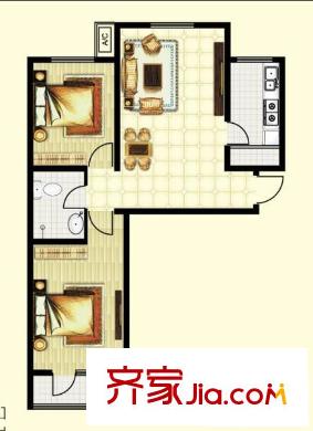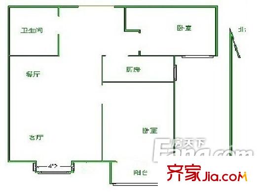 向阳茗筑户型图两室两厅 2室1厅1卫1厨