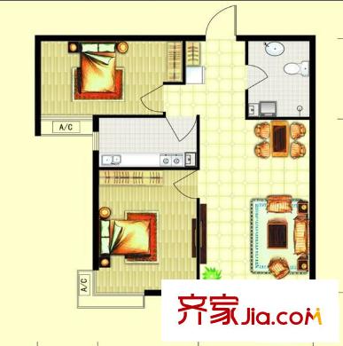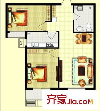 向阳茗筑户型图两室两厅 2室1厅1卫1厨