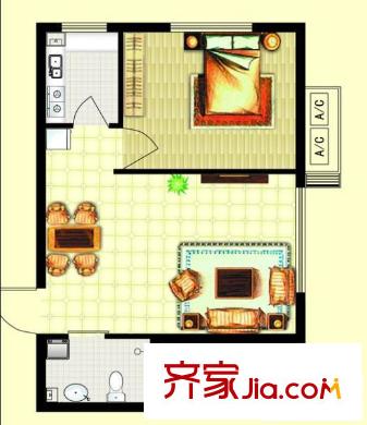 向阳茗筑户型图一室一厅一卫一厨54.62平米 1室1厅1卫1厨