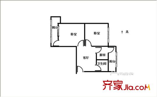 四里营铁路宿舍户型图两室一厅 2室1厅1卫1厨