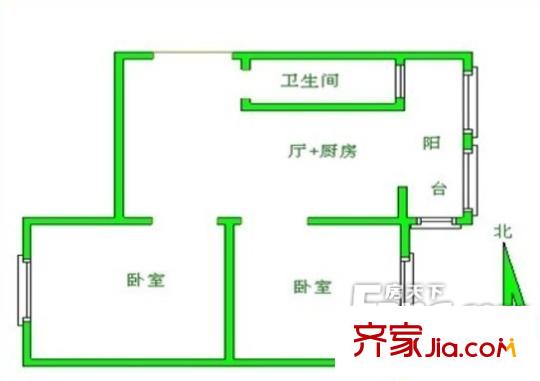 四里营铁路宿舍户型图两室一厅 2室1厅1卫1厨