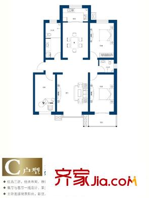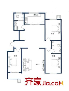 美林河畔户型图R1户型 3室2厅2卫1厨