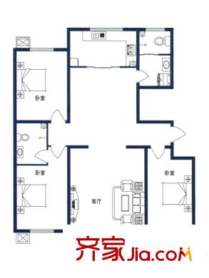 美林河畔137.20㎡D户型-三室二厅二卫户型3室2厅2卫