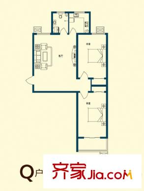 美林河畔户型图Q户型 2室1厅1卫1厨