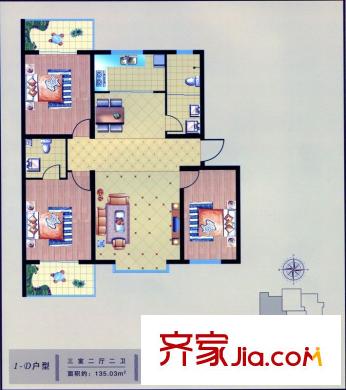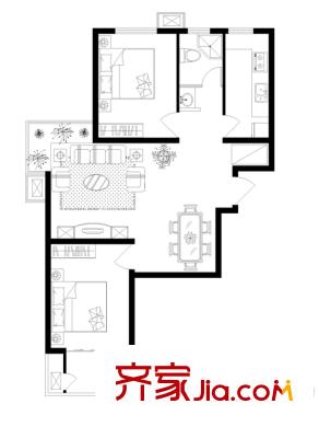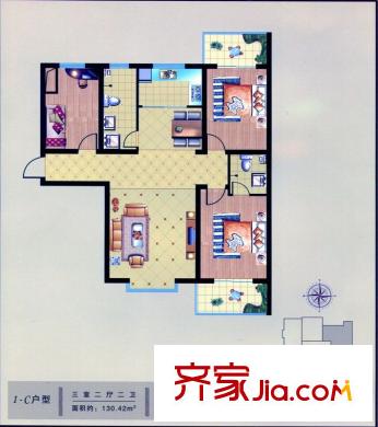 金沃向阳城户型图C1户型 3室2厅2卫1厨