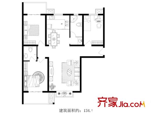金沃向阳城134.90㎡C1户型三室两厅两卫户型3室2厅2卫