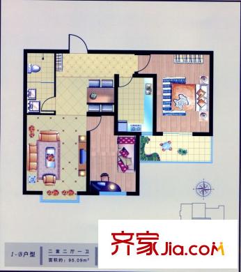 金沃向阳城户型图1-B户型 2室2厅1卫