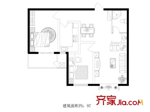 金沃向阳城97.38㎡B1户型两室两厅一卫户型2室2厅1卫