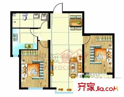 金沃向阳城户型图F1户型 2室2厅1卫1厨