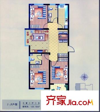金沃向阳城户型图A1户型 3室2厅2卫1厨