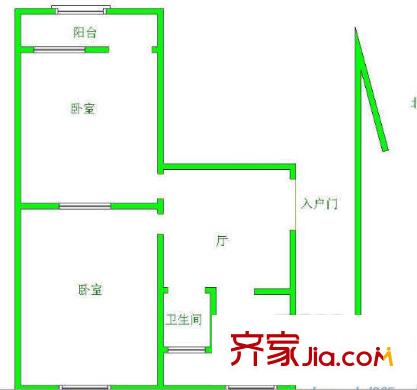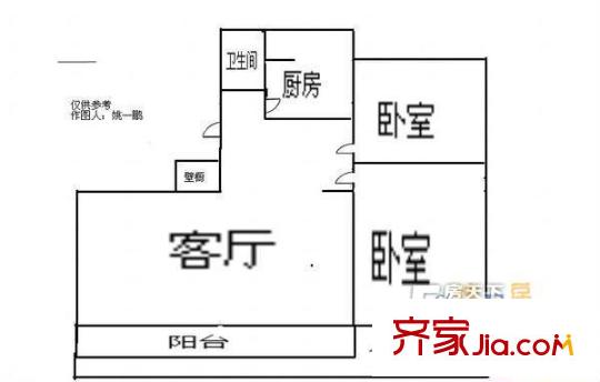 政府四号区户型图两室一厅 2室1厅1卫1厨