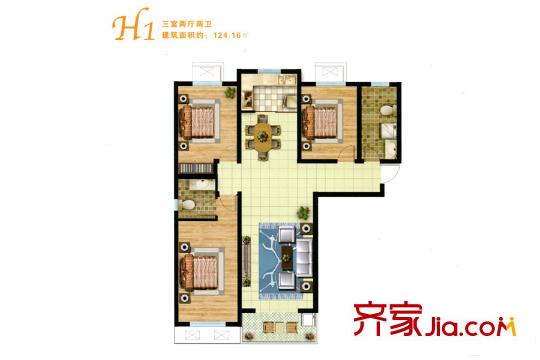 万和悦都H1户型 3室2厅2卫1厨