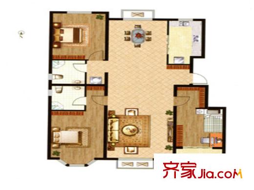 裕华铭珠C1户型 3室2厅2卫1厨