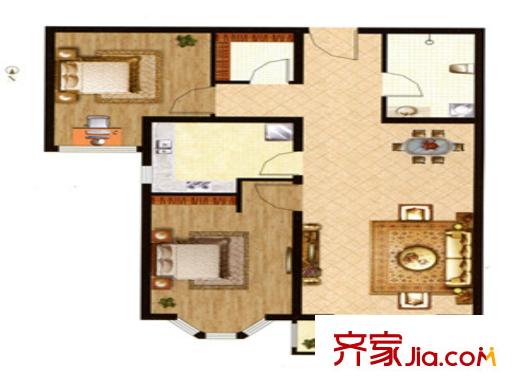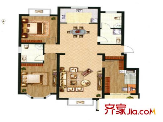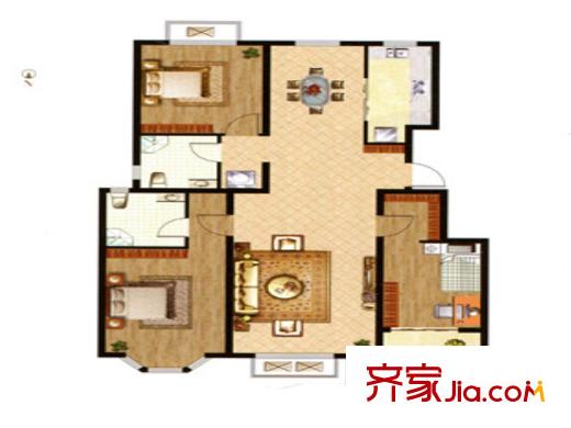 裕华铭珠已售完B4户型 3室2厅2卫1厨
