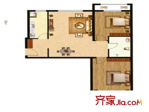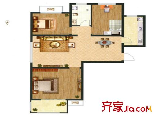 裕华铭珠已售完E3户型 2室2厅1卫1厨