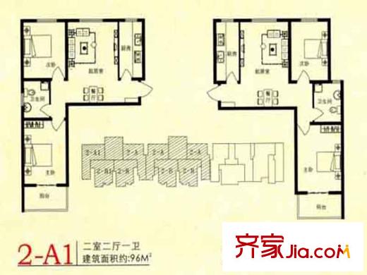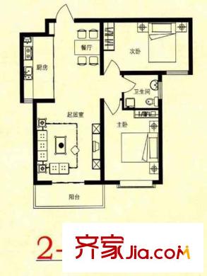 锦绣花园户型图2-A户型 2室2厅1卫1厨