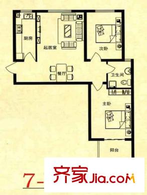 锦绣花园户型图7-D户型 2室2厅1卫1厨
