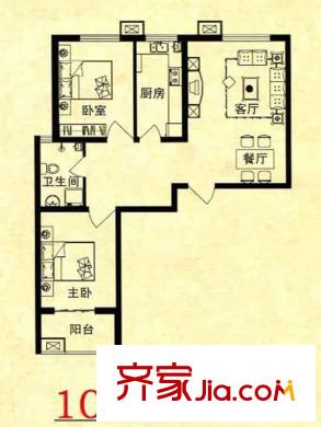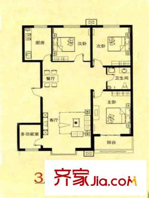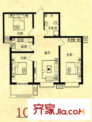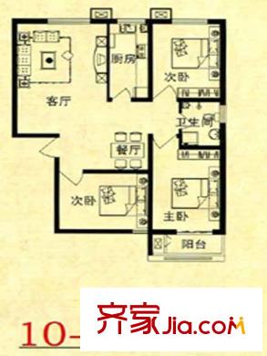 锦绣花园户型图10-B户型 3室1厅1卫1厨