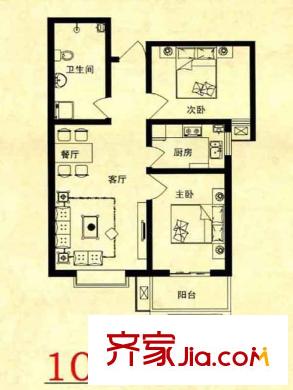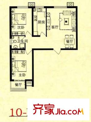 锦绣花园户型图10-C户型 2室2厅1卫1厨