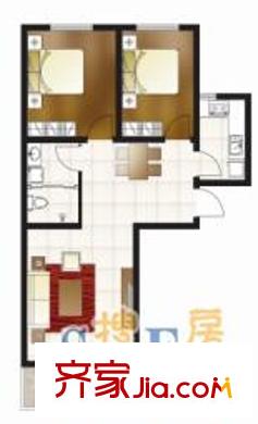 晨巍金地已售完高层E户型 2室2厅1卫1厨
