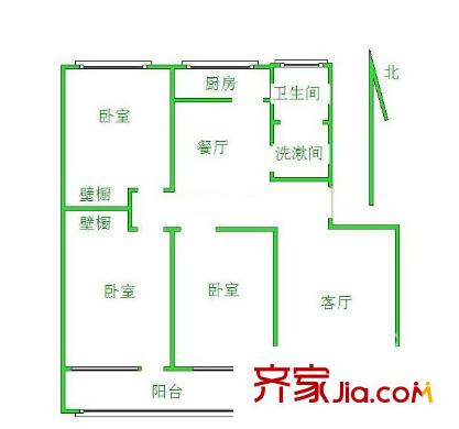 政府一号区户型图三室两厅 3室2厅1卫1厨