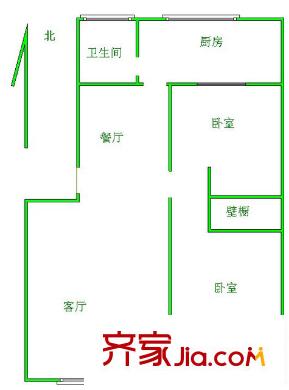 政府一号区户型图两室一厅 2室1厅1卫1厨