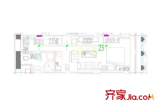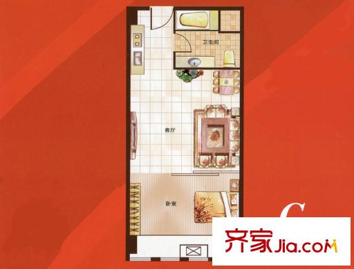 鸿悦国际C4户型 1室1厅1卫1厨
