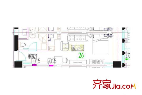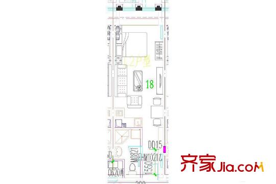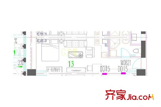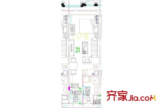 鸿悦国际G反户型 1室1厅1卫1厨