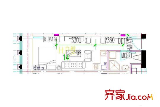 鸿悦国际H户型 1室1厅1卫1厨