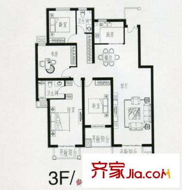 紫御美墅户型图C1户型 3F 4室2厅2卫