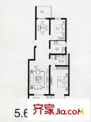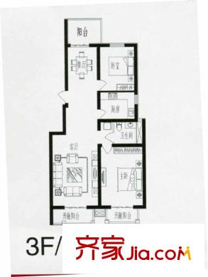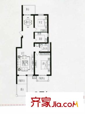 紫御美墅户型图多层H户型3F 2室2厅1卫1厨