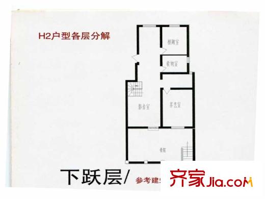 紫御美墅户型图 H户型 下跃层 4室2厅2卫