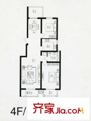 紫御美墅户型图 多层H户型 2室2厅1卫1厨