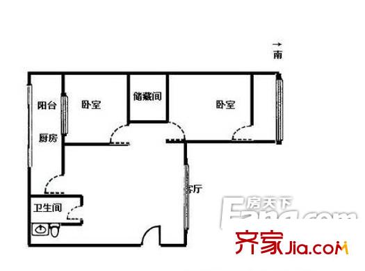 三中宿舍户型图两室一厅 2室1厅1卫1厨