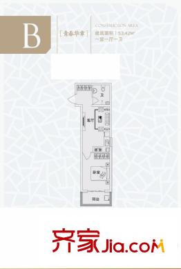 华舜学府53.42㎡B-一室一厅一卫户型1室1厅1卫