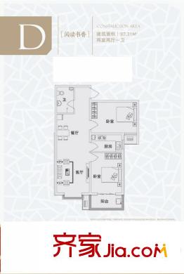 华舜学府97.31㎡D-两室两厅一卫户型2室2厅1卫