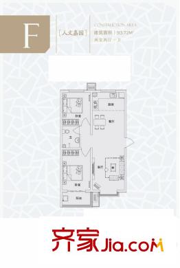 华舜学府93.72㎡F-两室两厅一卫户型2室2厅1卫