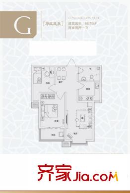 华舜学府86.79㎡G-两室两厅一卫户型2室2厅1卫