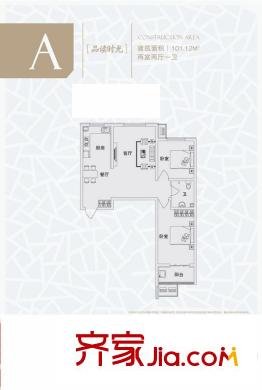 华舜学府101.12㎡A-两室两厅一卫户型2室2厅1卫
