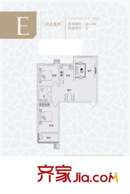 华舜学府98.14㎡E-两室两厅一卫户型2室2厅1卫