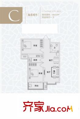 华舜学府88.50㎡C-两室两厅一卫户型2室2厅1卫