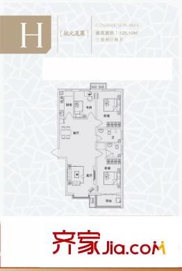 华舜学府2、5号楼H户型 3室2厅2卫1厨