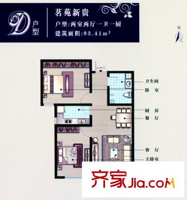 香溪茗苑户型图高层D户型 2室2厅1卫1厨